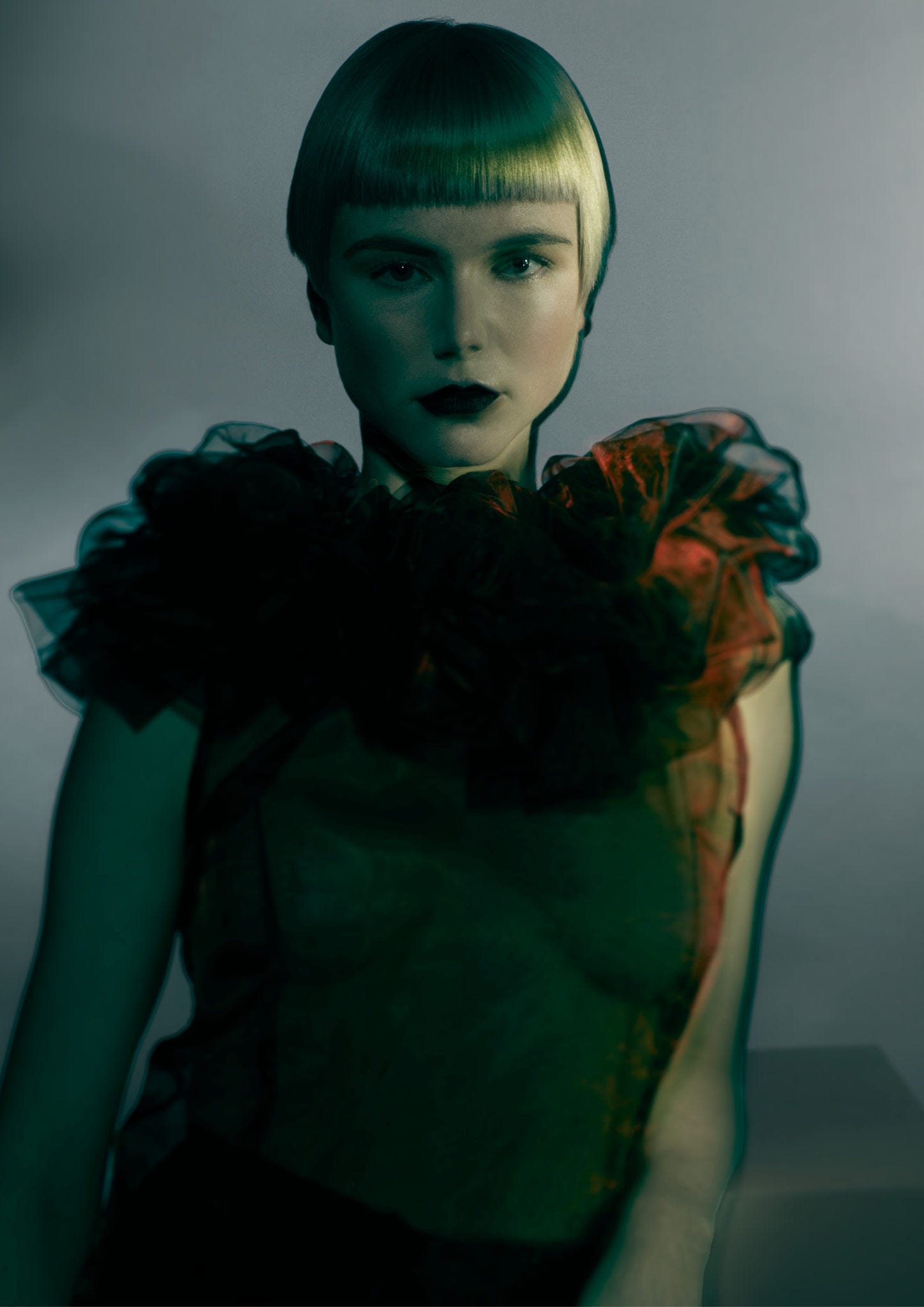 The colours and subtle shade variations of the rose is also the motif for the colour techniques together with the poem “What is Pink” by Christina Rossetti. The techniques are definite, solid sections of colour, creating a statement and amplifying the dynamic of the shape. Inspiration from the art of Paul Klee is also a factor this season, using the lengths of the hair to paint misshapen patterns of contrasting tones through the natural red bases.